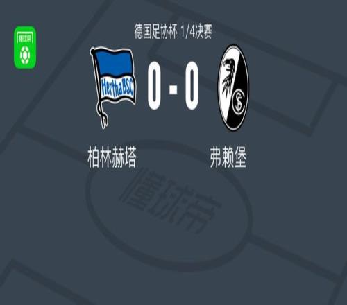 北京时间2月11日德国足协杯 1/4决赛,柏林赫塔对阵弗赖堡。最终比分柏林赫塔 0