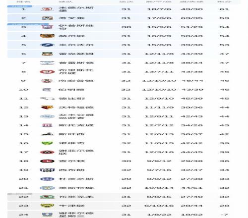 英冠前2名直接升级,第3-6名球队参加附加赛,争夺1个英超席位。南安普顿队取得3连胜,近5轮4胜1平,目前积46分排名第9,落后升级附加赛区1分。反观莱斯特城,近4轮全败(1-2牛津联,0-2查尔顿,1-2伯明翰),只有32分排名倒数第4(违反财务规则被扣6分),多赛一轮与身后的降级区球队布莱克本流浪者同分。