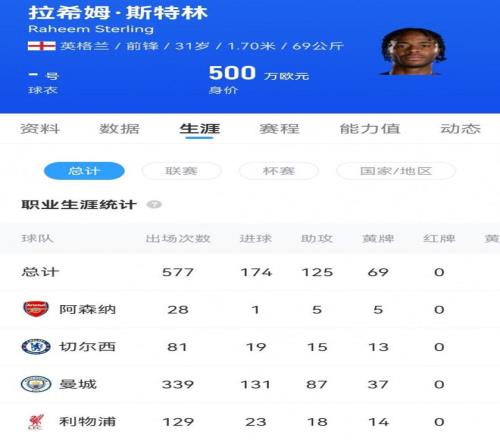 在伊蒂哈德的七年是斯特林职业生涯的巅峰。他随曼城四次捧起英超奖杯,一次进入欧冠决赛。339次出场,131粒进球,73次助攻。数据之外,他是瓜迪奥拉边锋体系中最锐利的突破点,虽然也是英格兰国家队“快乐足球”代言人,不过却是被低估的那个战术执行者。