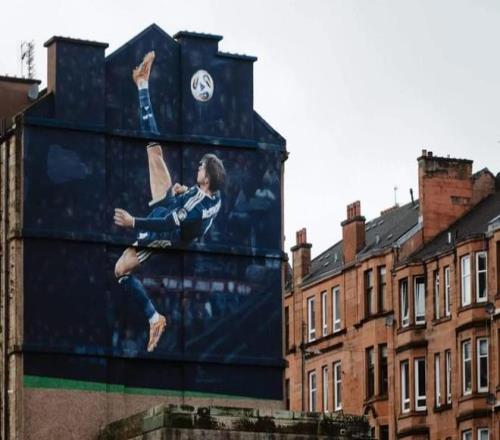 这幅由阿迪达斯委托制作、致敬“苏格兰史上最伟大进球之一”的壁画,已于周五在格拉斯哥的苏格兰队主场外揭幕。