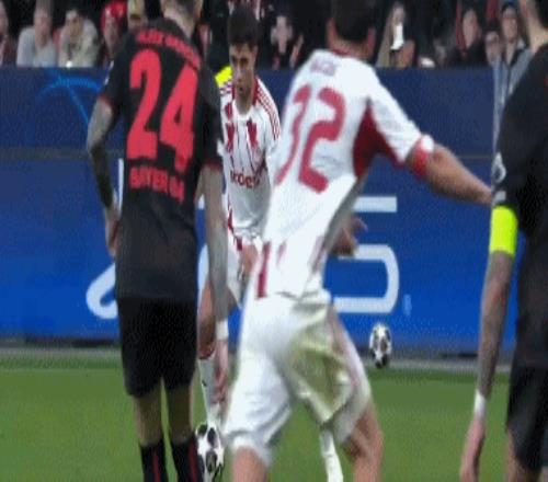 勒沃库森总比分20奥林匹亚科斯晋级16强,格里马尔多中横梁