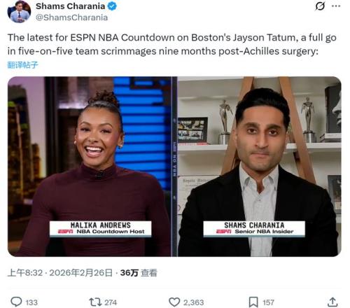 名记Shams在节目中透露,凯尔特人球星已经全程参与5对5对抗训练,球队将在3月份帮他达到最佳状态。至于具体哪一场复出,绿军尊重他本人的意愿。
