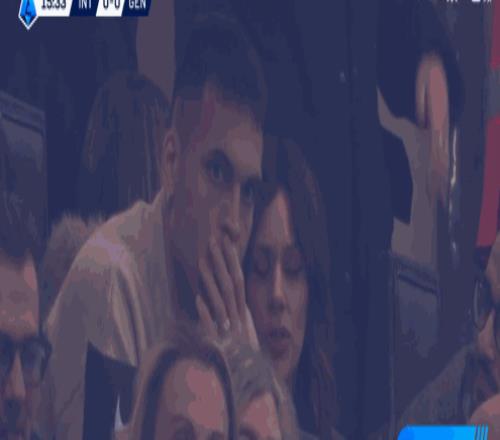 第16分钟,镜头给到场边了,劳塔罗看台观战