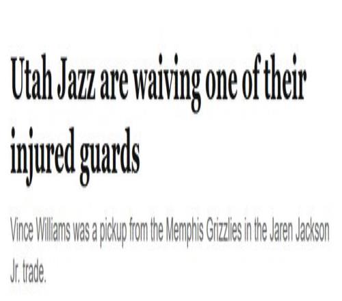 北京时间3月10日,据《盐湖城论坛报》记者雷诺兹报道,犹他爵士队将裁掉受伤的后卫小文斯-威廉姆斯。