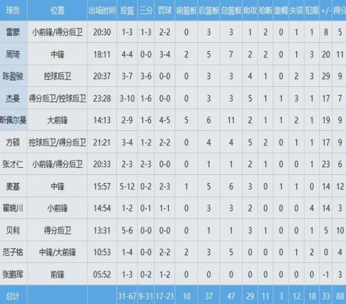 四川队数据如下: