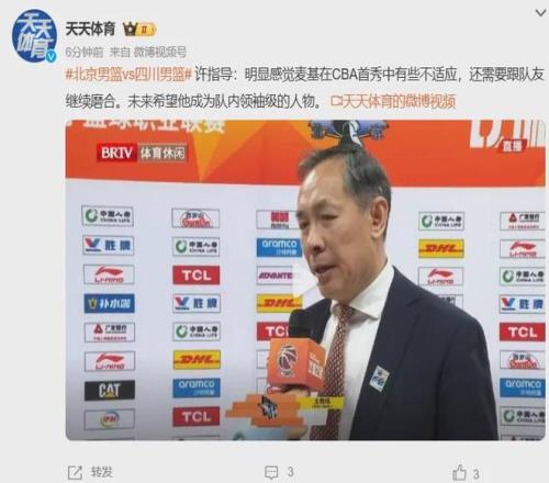 北京队主帅许利民对此表示:麦基首秀有些不适应CBA节奏,仍需要跟队友磨合培养默契,未来希望他能够成为球队的领袖级别人物。
