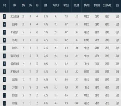 本赛季至今,北京队以15胜9负排名联盟第五,上海队则以20胜4负高居联盟第二。