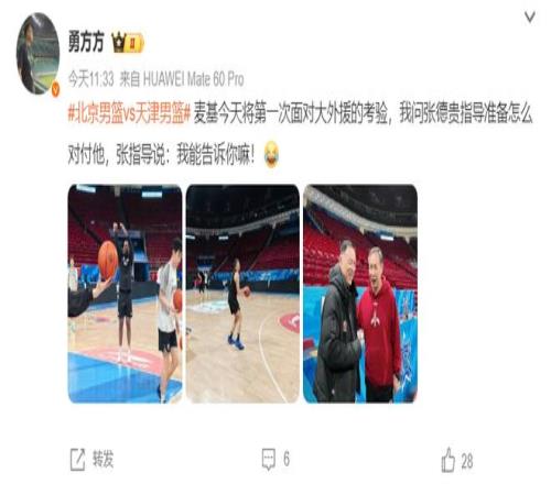 麦基今天将第一次面对大外援的考验,张德贵指导卖关子不肯说如何限制麦基。