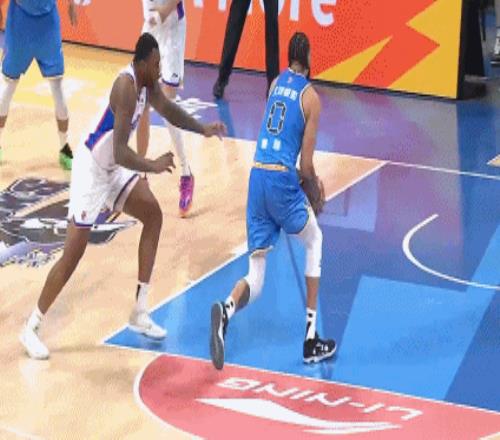 有的时候是这样,但更多的时候能够更好地让他策应完了以后能够下到低位,这样的话我们就能够让他打得比较完美,或者是能够整个带动我们的进攻体系。