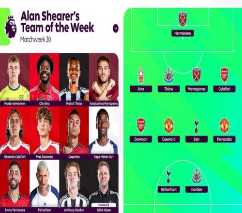 阿兰-希勒评英超第30轮最佳阵容: