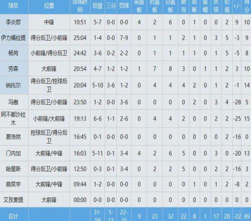 广东队数据如下: