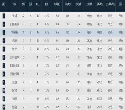此役过后,广东队以19胜8负继续排名联盟第三,仅次于上海队(22-4)和卫冕冠军广厦队(21-5)。