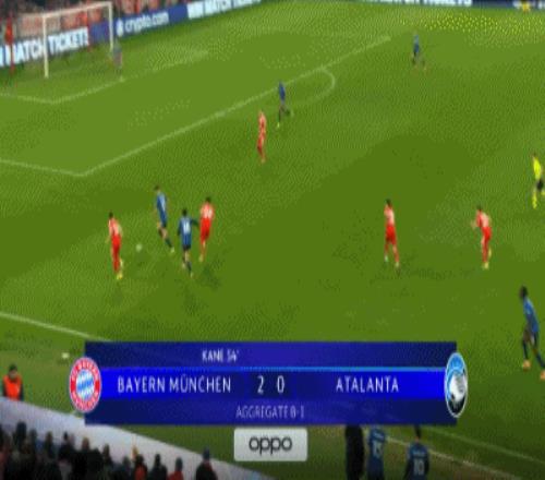 第23分钟拜仁的狂攻造成了斯卡尔维尼禁区内手球,为自己赢得一粒点球,凯恩第一次主罚虽然被扑,但亚特兰大提前移动,凯恩获得了再次罚球的机会,这一次大英帝星把握住了机会,帮助拜仁将比分改写为了1-0,第31分钟亚特兰大本有机会扳平比分,但德凯特拉雷的单刀机会没有把握住。