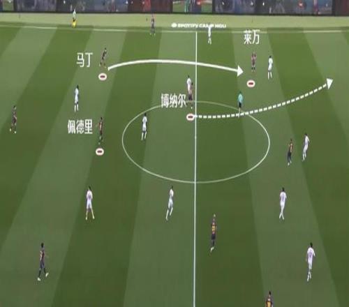 尤其是亚马尔持球从边路内切时,当佩德里向外线走,对方注意力自然会被带走,于是前顶到禁区前的贝尔纳尔就有了用武之地。