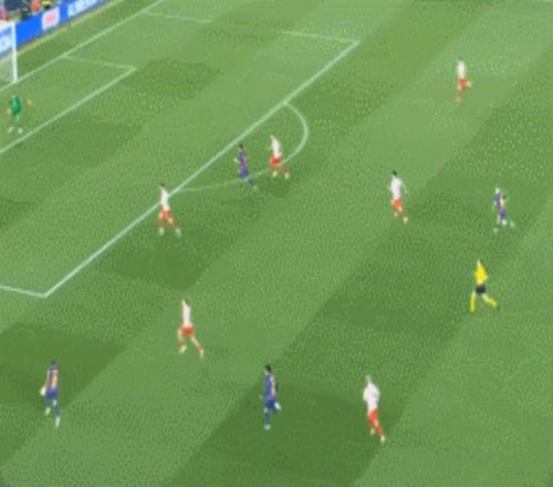 弗里克的战术体系下,莱万的价值是巨大的,通过这名中锋的大范围游动,可以带来不对称的前插打击空间。这一次就是中卫马丁和莱万连线,然后贝尔纳尔又前插了。