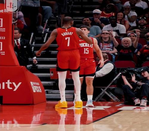 此役谢泼德的发挥太耀眼了,就连球队的领袖杜兰特都上前来主动跟谢泼德击掌,这说明KD对小谢的表现非常认可。两人在替补席看戏时谢泼德也露出了灿烂的笑容。