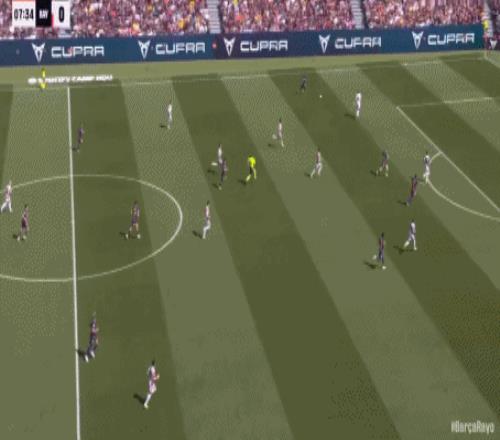 第22分钟,亚马尔外脚背传中,拉菲尼亚打门没打好