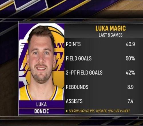 NBA湖人8连胜,东契奇湖人生涯第一次狂砍60分