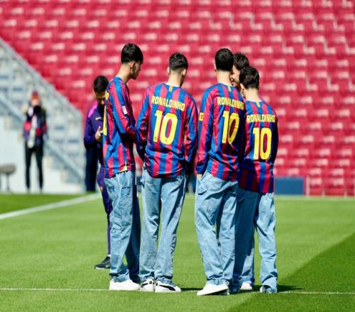 巴萨球员身穿小罗的10号球衣踩场热身,给他昨天的46岁生日庆生