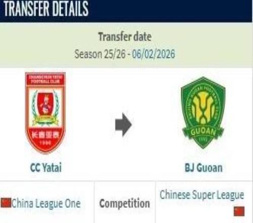 德转:王禹加盟国安的转会费约26万元人民币