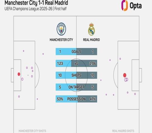 皇马半场预期进球2.06,为有统计以来球队欧冠淘汰赛单场纪录