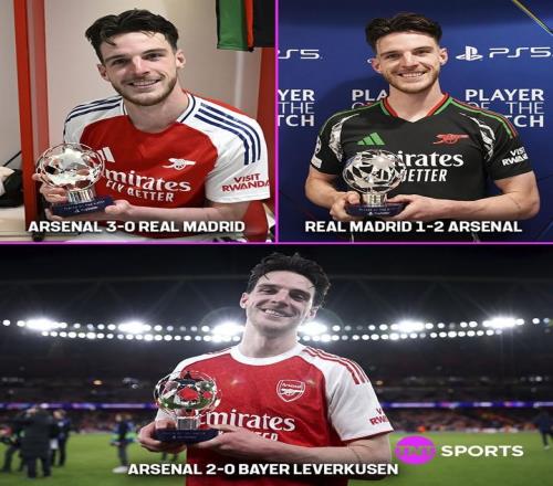 关键先生,阿森纳最近三次欧冠淘汰赛获胜时的MVP都是赖斯