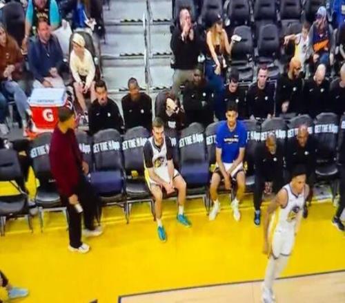 不闲着!库里本场作壁上观麦丹死球试投三分险遭小学生大帽