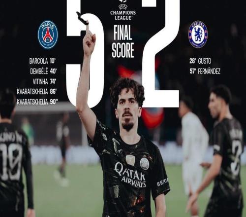 【欧冠】登贝莱破门克瓦拉双响!巴黎5比2切尔西