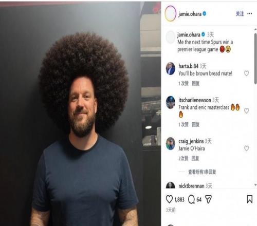 奥哈拉此前玩“蓄发哥”梗调侃热刺不赢球,本轮热刺又输了