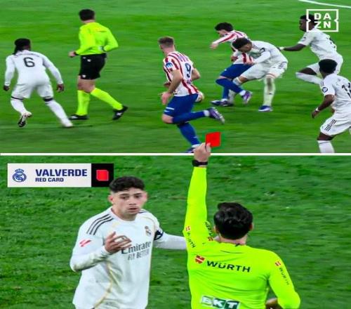 巧合,皇马西甲对阵马竞上一次有皇马球员被罚下也是32获胜