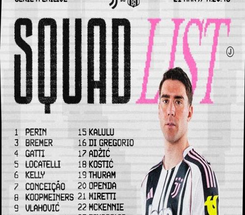 尤文主场战萨索洛名单:弗拉霍维奇复出,伊尔迪兹、戴维在列